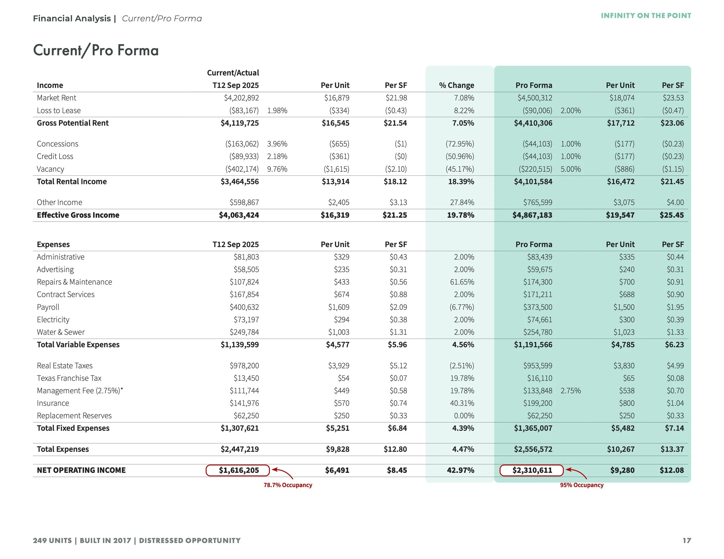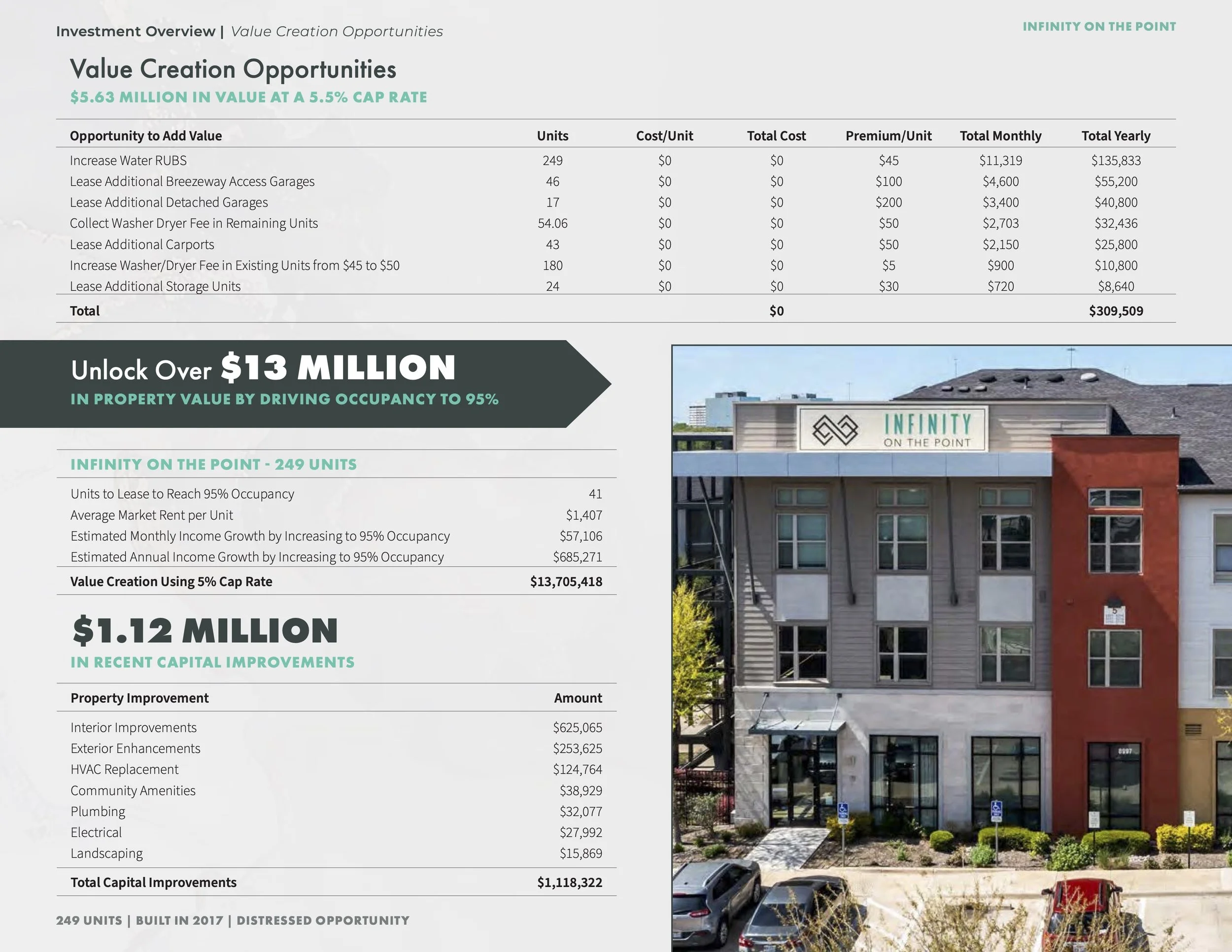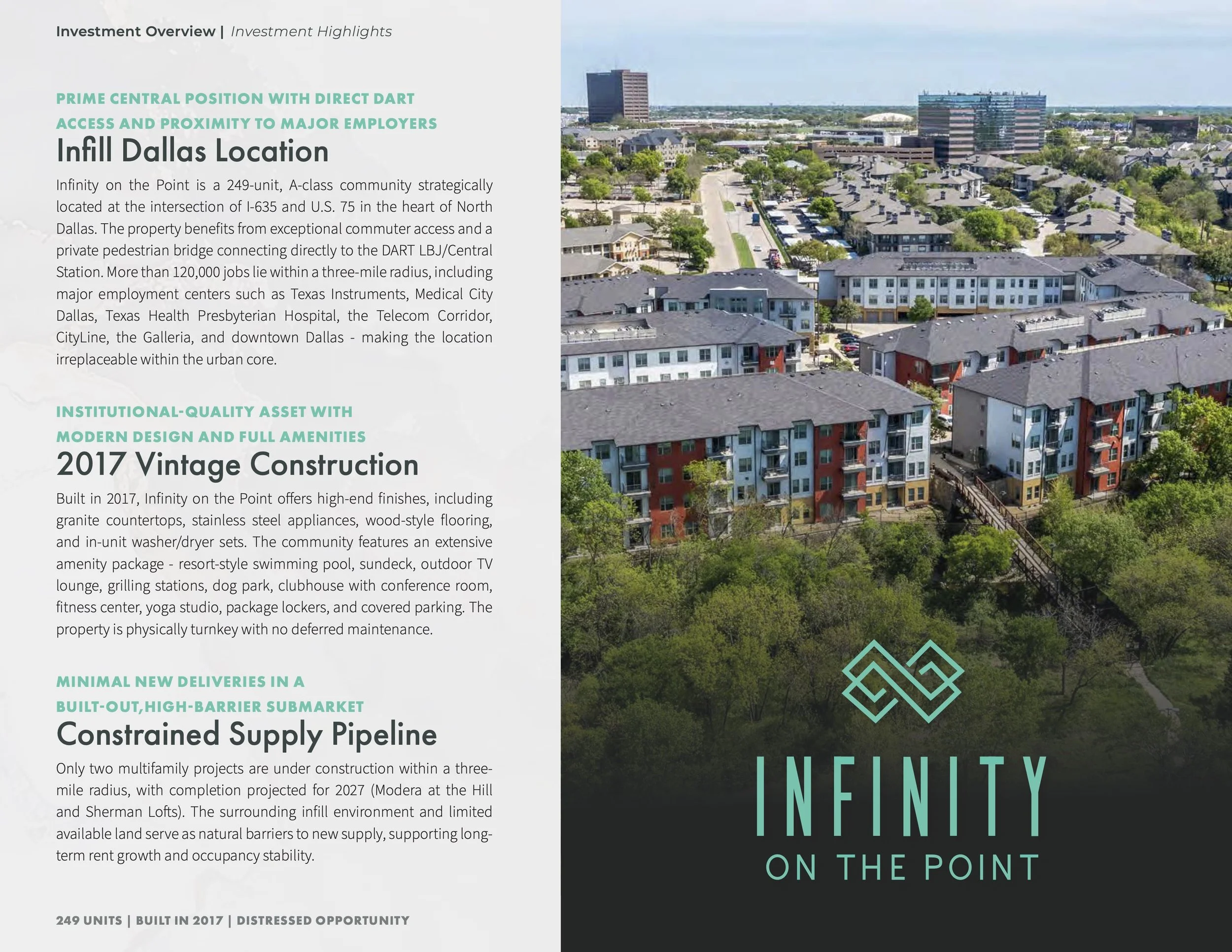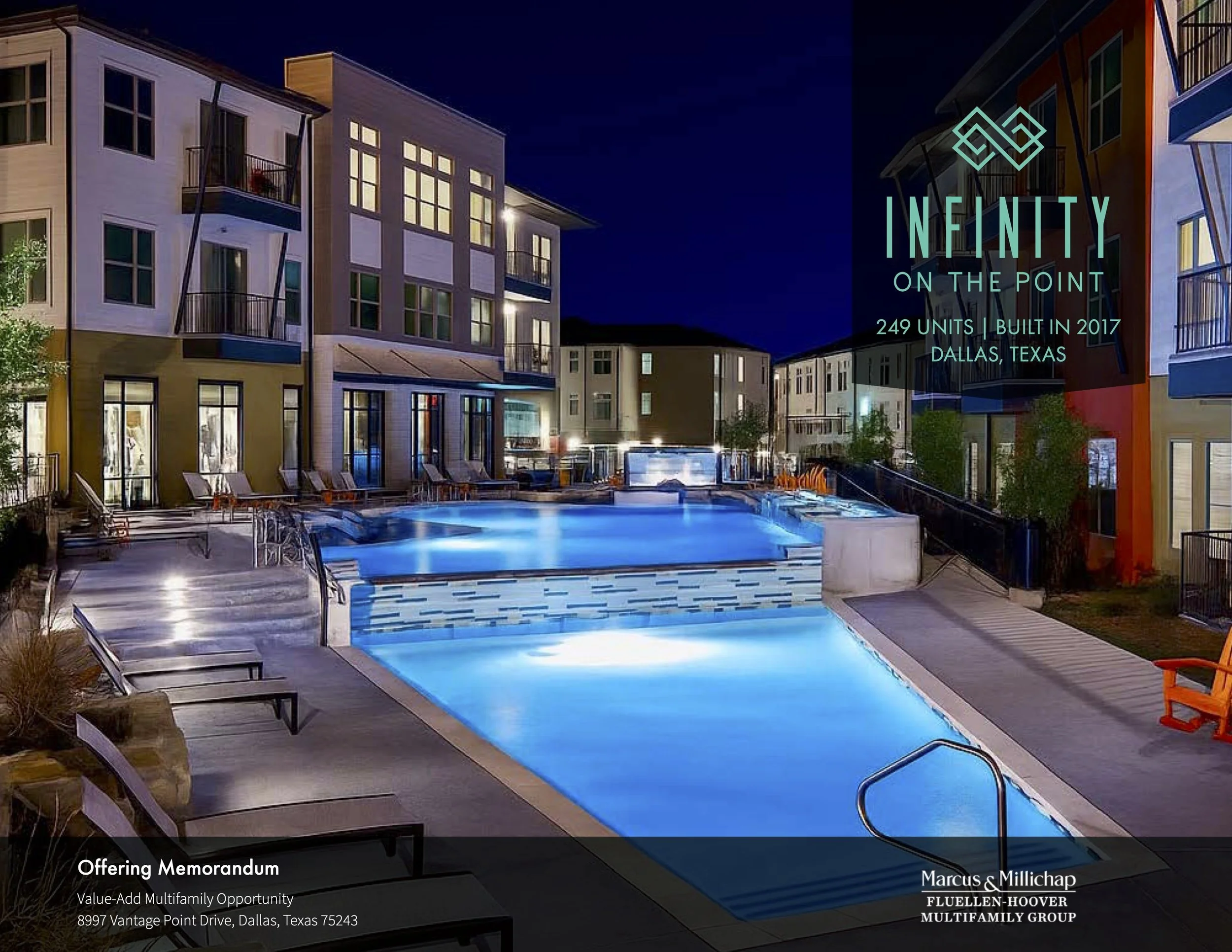 Designed a 37-page, comprehensive offering memorandum for a Class A multifamily asset, focused on presenting a clear value-add investment story. The project translates complex financial data, occupancy trends, and market positioning into a structured, visually digestible format for investors.Infinity on the Point